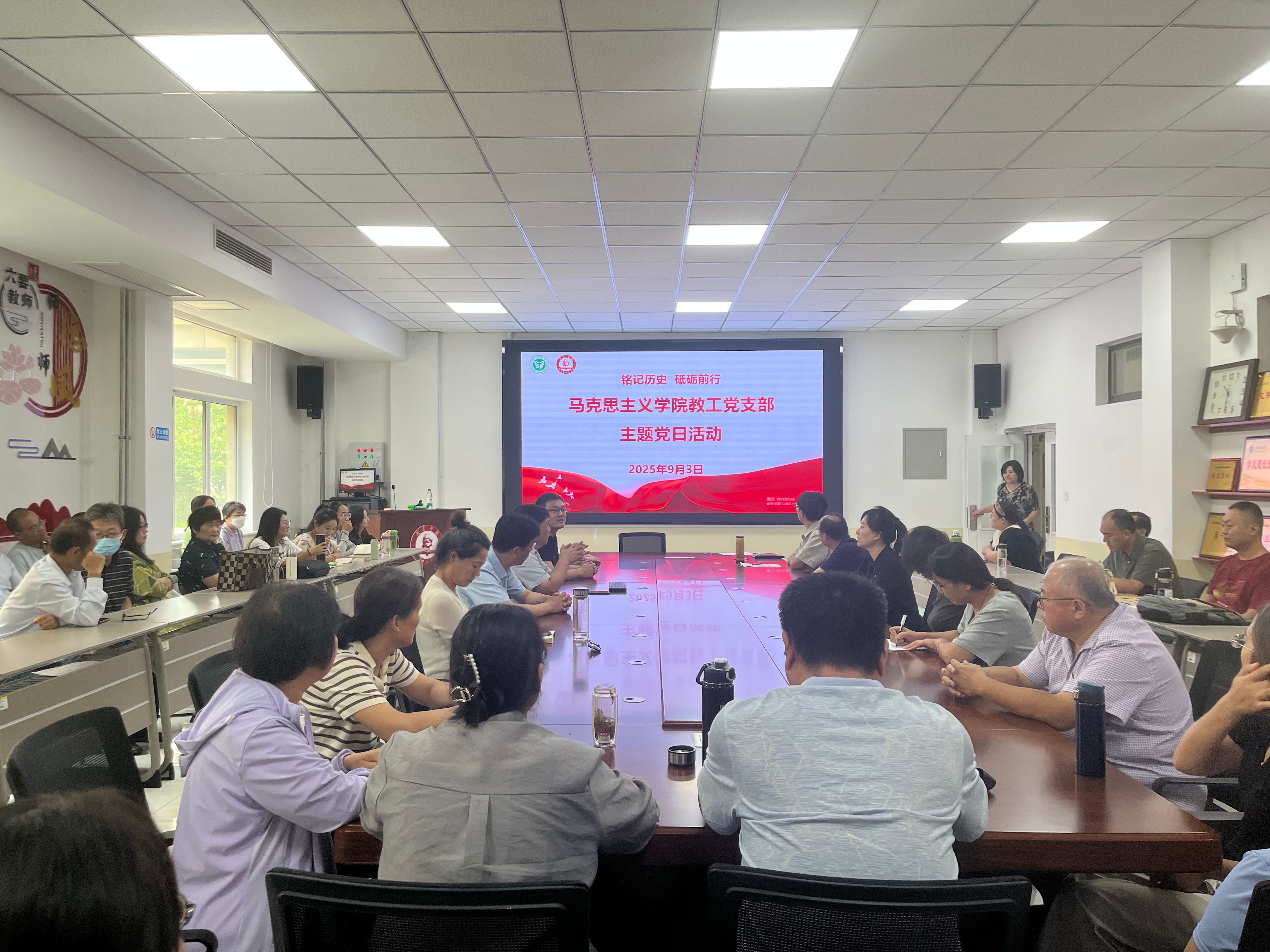 会后,教工党支部开展了“铭记历史 砥砺前行”主题党日活动。下一步,马克思主义学院将不断推动抗战精神与思政课程、课程思政深度融合,持续提升教学质量和学术水平,为培养担当民族复兴大任的时代新人筑牢思想根基,为教育强国建设、民族复兴伟业贡献自己的力量。